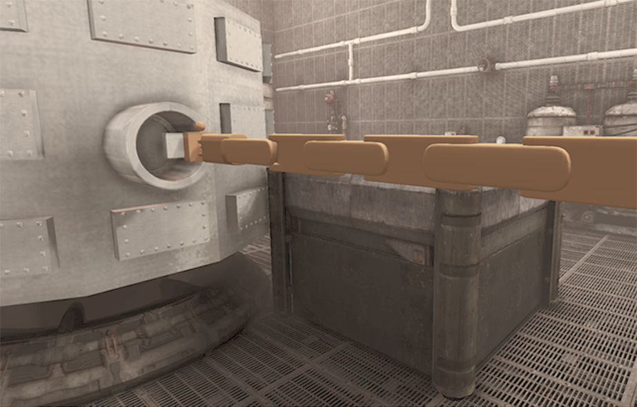 The interior of the SST-1 is lined with graphite tiles. The player can either be a maintenance operator or a supervisor involved in the design and specifications of the real robotic arm. The player assumes the role of an SST operator performing maintenance operations through the course of the game, and learns to use the robotic arm to identify and replace damaged tiles. The game is designed in accordance with 4 Component Instructional Design (4C/ID) approach to developing training systems. It incorporates various levels of difficulty to train operators and monitor their progress as they develop their skill. It also helps supervisors to identify key specifications for the real robotic arm based on the progress of their operators, and on their own experience with the system.